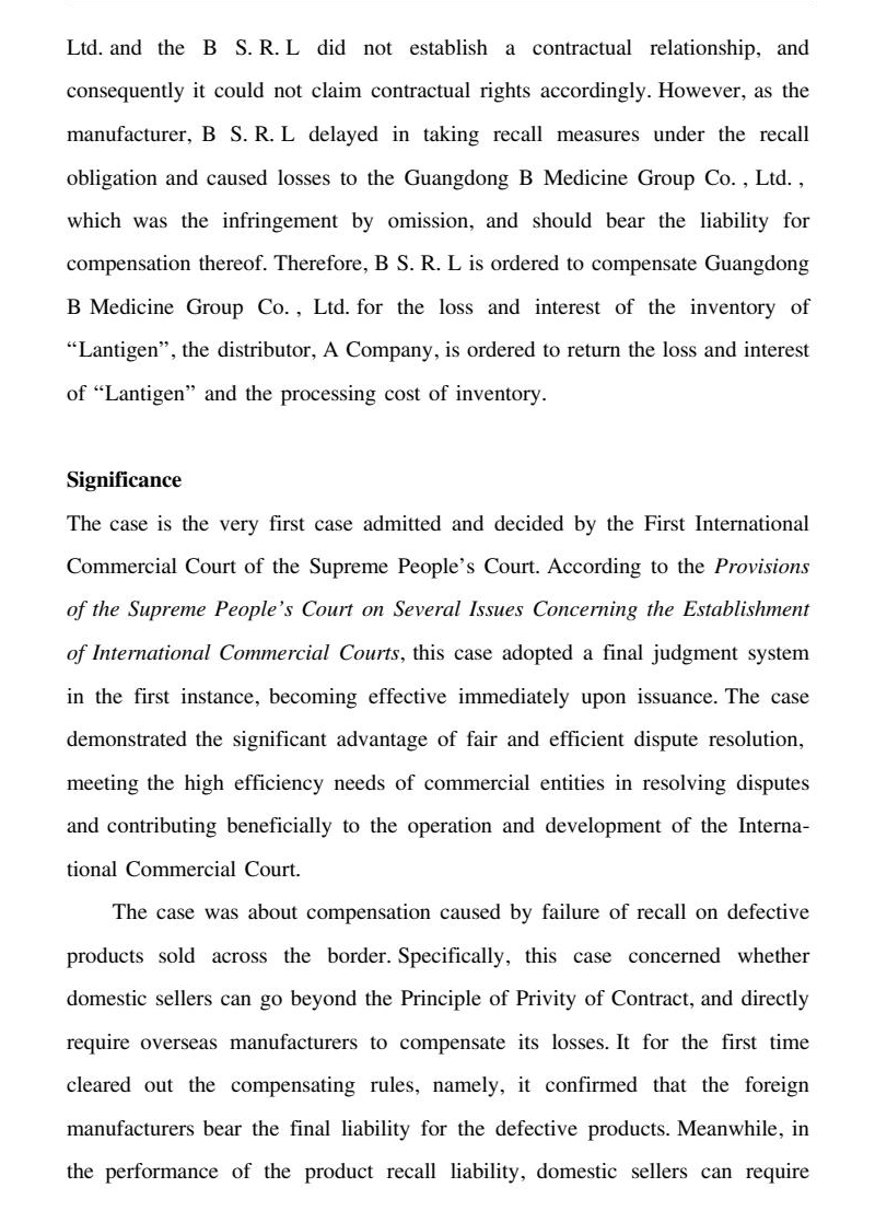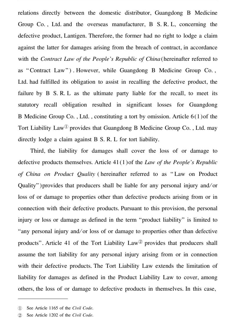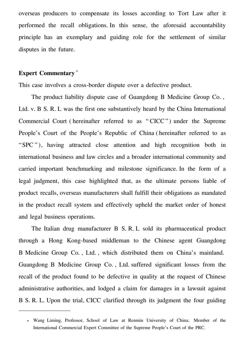 Guangdong B Medicine Group Co., Ltd. v. B S. R. L ( Italy ) ( Product Liability )*